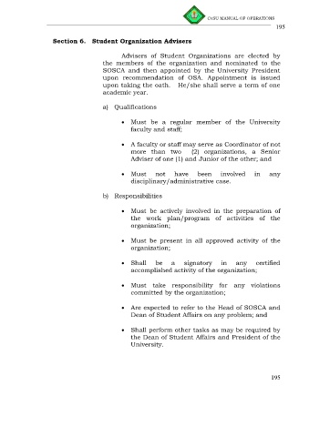 Section 6. Student Organization Advisers