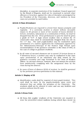 c) In cases of leave of absence (LOA) of student, he shall be governed