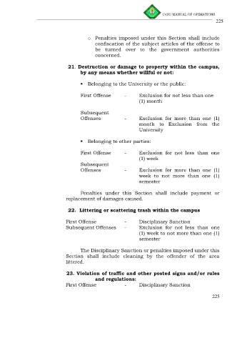 21. Destruction or damage to property within the campus,