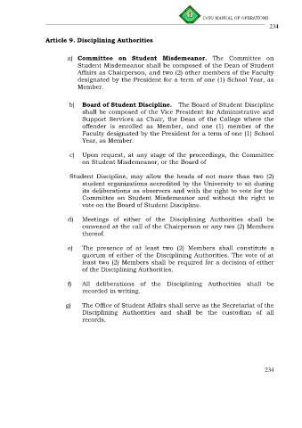 g) The Office of Student Affairs shall serve as the Secretariat of the