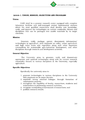 Article 1. VISION, MISSION, OBJECTIVES AND PROGRAMS