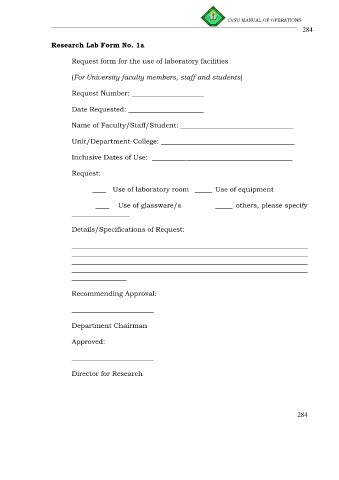 Research Lab Form No. 1a