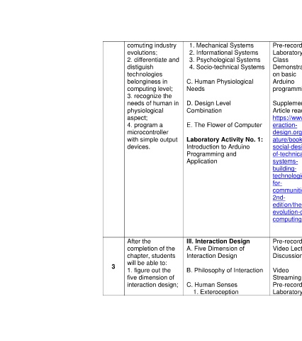 After the III. Interaction Design Pre-recorded Distance Laptop/ Tablet/ OBA 3: Week 5
