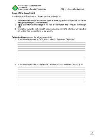 Department of Information Technology ITEC 90 – Network Fundamentals