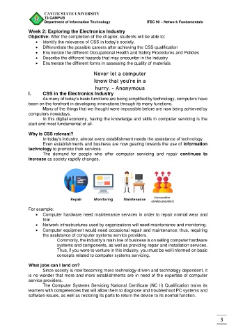 The Computer Systems Servicing National Certificate (NC II) Qualification trains its