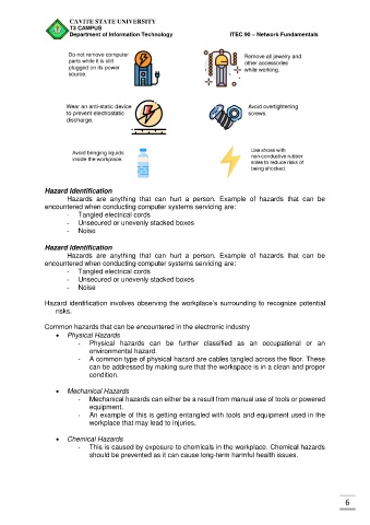 Hazards are anything that can hurt a person. Example of hazards that can be