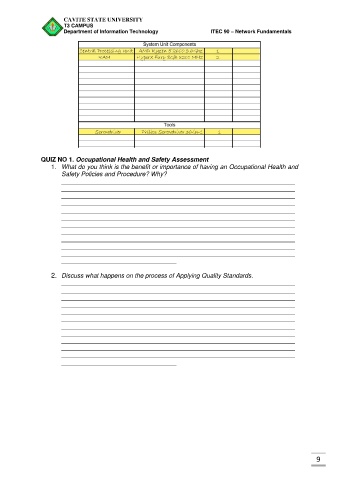 QUIZ NO 1. Occupational Health and Safety Assessment