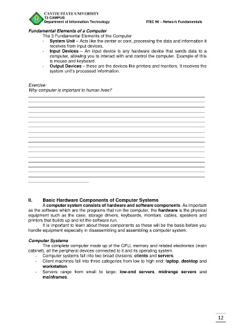 II. Basic Hardware Components of Computer Systems