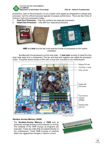cooler. The photo below shows a CPU with a heat sink mounted on the motherboard.