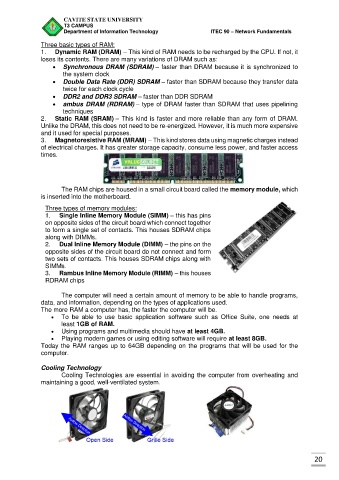 1. Dynamic RAM (DRAM) – This kind of RAM needs to be recharged by the CPU. If not, it