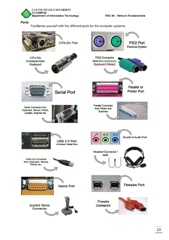 CAVITE STATE UNIVERSITY T3 CAMPUS Department of Information Technology ITEC 90 – Network Fundamentals Ports Familiarize yourself with the different ports for the computer systems. 23