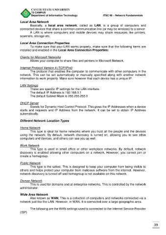 Department of Information Technology ITEC 90 – Network Fundamentals