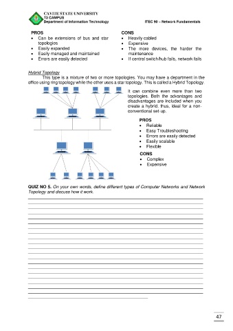 QUIZ NO 5. On your own words, define different types of Computer Networks and Network