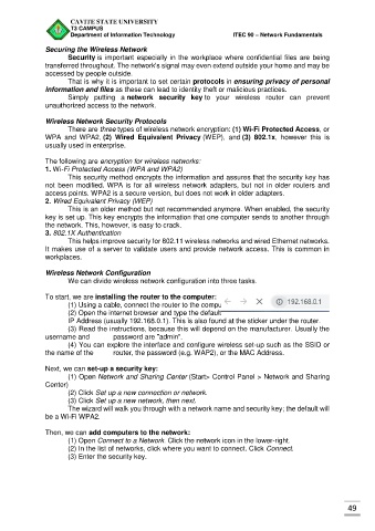Department of Information Technology ITEC 90 – Network Fundamentals