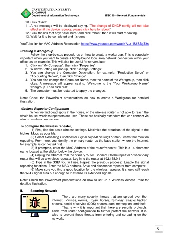 Department of Information Technology ITEC 90 – Network Fundamentals