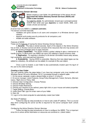 Department of Information Technology ITEC 90 – Network Fundamentals