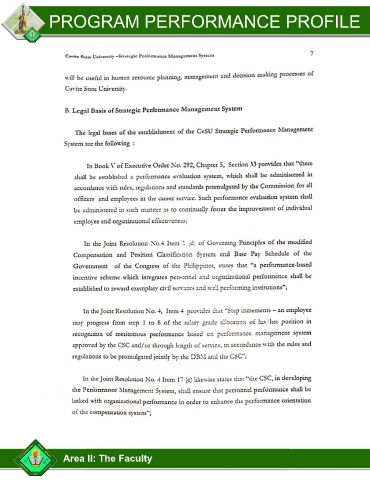 PROGRAM PERFORMANCE PROFILE Area II: The Faculty