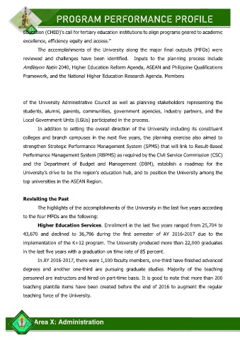 implementation of the K+12 program. The University produced more than 22,000 graduates