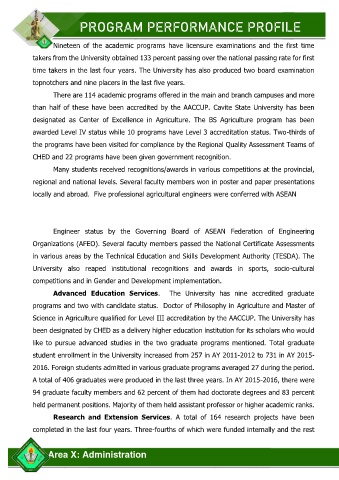 Science in Agriculture qualified for Level III accreditation by the AACCUP. The University has