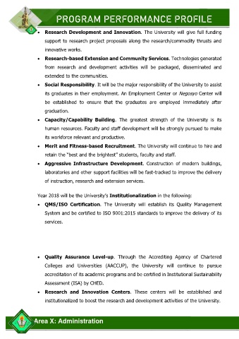 Colleges and Universities (AACCUP), the University will continue to pursue