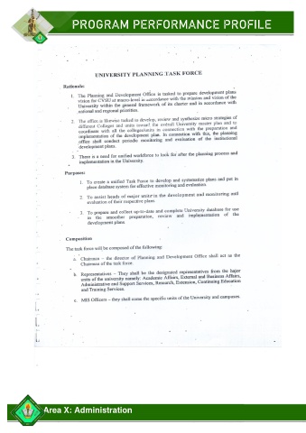PROGRAM PERFORMANCE PROFILE Area X: Administration