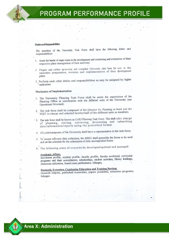 PROGRAM PERFORMANCE PROFILE Area X: Administration