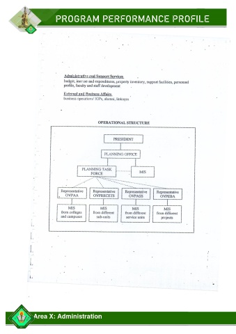 PROGRAM PERFORMANCE PROFILE Area X: Administration
