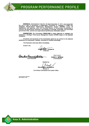 PROGRAM PERFORMANCE PROFILE Area X: Administration