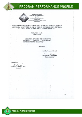 PROGRAM PERFORMANCE PROFILE Area X: Administration