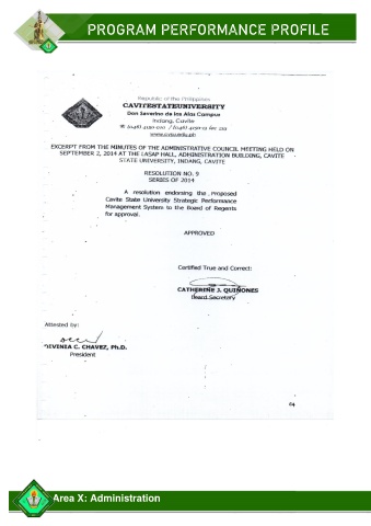 PROGRAM PERFORMANCE PROFILE Area X: Administration