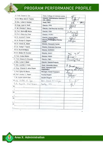 PROGRAM PERFORMANCE PROFILE Area X: Administration