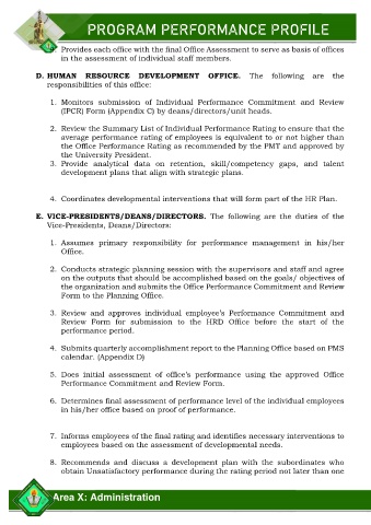 E. VICE-PRESIDENTS/DEANS/DIRECTORS. The following are the duties of the