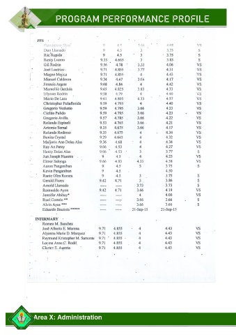PROGRAM PERFORMANCE PROFILE Area X: Administration