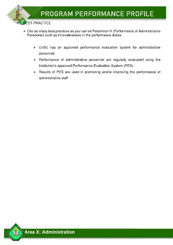 ➢ Cite as many best practices as you can on Parameter H (Performance of Administrative