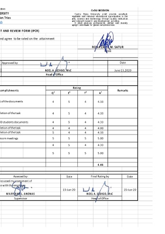 INDIVIDUAL PERFORMANCE COMMITMENT AND REVIEW FORM (IPCR)