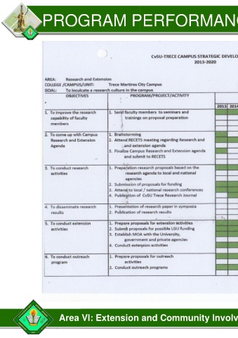 PROGRAM PERFORMANCE PROFILE Area VI: Extension and Community Involvement