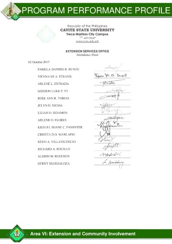 PROGRAM PERFORMANCE PROFILE Area VI: Extension and Community Involvement
