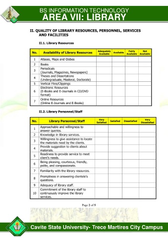 BS INFORMATION TECHNOLOGY AREA VII: LIBRARY Cavite State University- Trece Martires City Campus