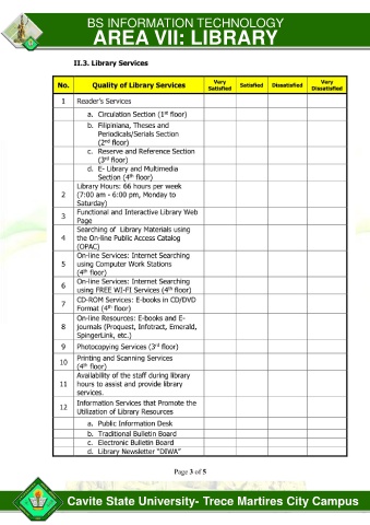 BS INFORMATION TECHNOLOGY AREA VII: LIBRARY Cavite State University- Trece Martires City Campus