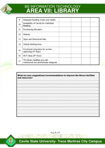 BS INFORMATION TECHNOLOGY AREA VII: LIBRARY Cavite State University- Trece Martires City Campus