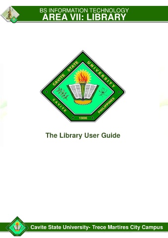 BS INFORMATION TECHNOLOGY AREA VII: LIBRARY PARAMETER A: ADMINISTRATION SYSTEM – INPUTS AND PROCESSES The Library User Guide S.1. The organizational structure of the library is well-defined. Cavite State University- Trece Martires City Campus