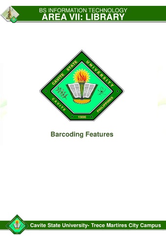 BS INFORMATION TECHNOLOGY AREA VII: LIBRARY PARAMETER A: ADMINISTRATION SYSTEM – INPUTS AND PROCESSES Barcoding Features S.1. The organizational structure of the library is well-defined. Cavite State University- Trece Martires City Campus