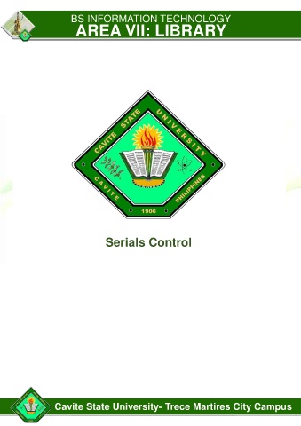 BS INFORMATION TECHNOLOGY AREA VII: LIBRARY PARAMETER A: ADMINISTRATION SYSTEM – INPUTS AND PROCESSES Serials Control S.1. The organizational structure of the library is well-defined. Cavite State University- Trece Martires City Campus