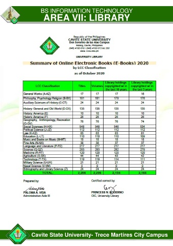 BS INFORMATION TECHNOLOGY AREA VII: LIBRARY Cavite State University- Trece Martires City Campus