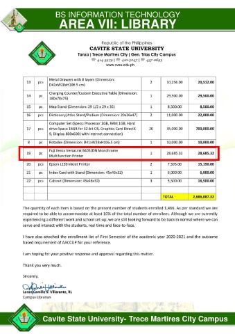 BS INFORMATION TECHNOLOGY AREA VII: LIBRARY Cavite State University- Trece Martires City Campus