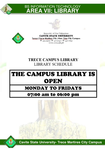BS INFORMATION TECHNOLOGY AREA VII: LIBRARY Cavite State University- Trece Martires City Campus