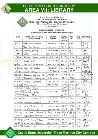 BS INFORMATION TECHNOLOGY AREA VII: LIBRARY Cavite State University- Trece Martires City Campus