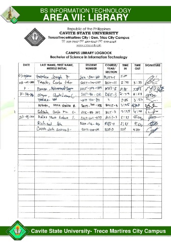 BS INFORMATION TECHNOLOGY AREA VII: LIBRARY Cavite State University- Trece Martires City Campus