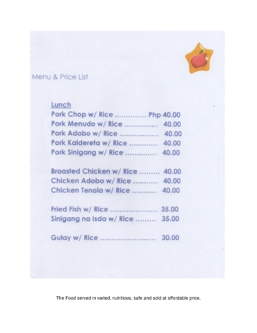 The Food served in varied, nutritious, safe and sold at affordable price.