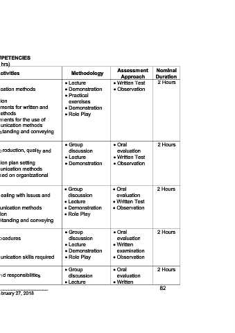 Competency Outcomes Learning Activities Methodology Approach Duration